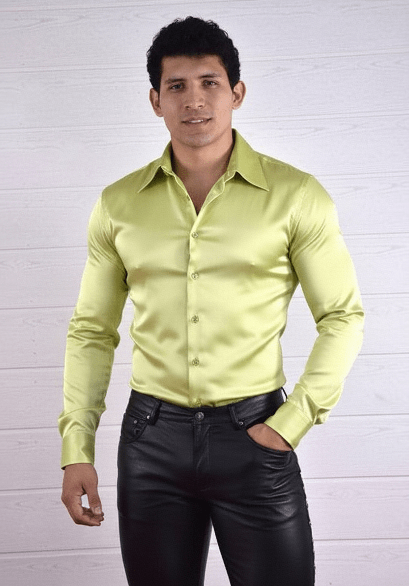 Eleva tu estilo con esta camisa de raso inarrugable, diseñada y confeccionada artesanalmente por 12 Rosas en España.